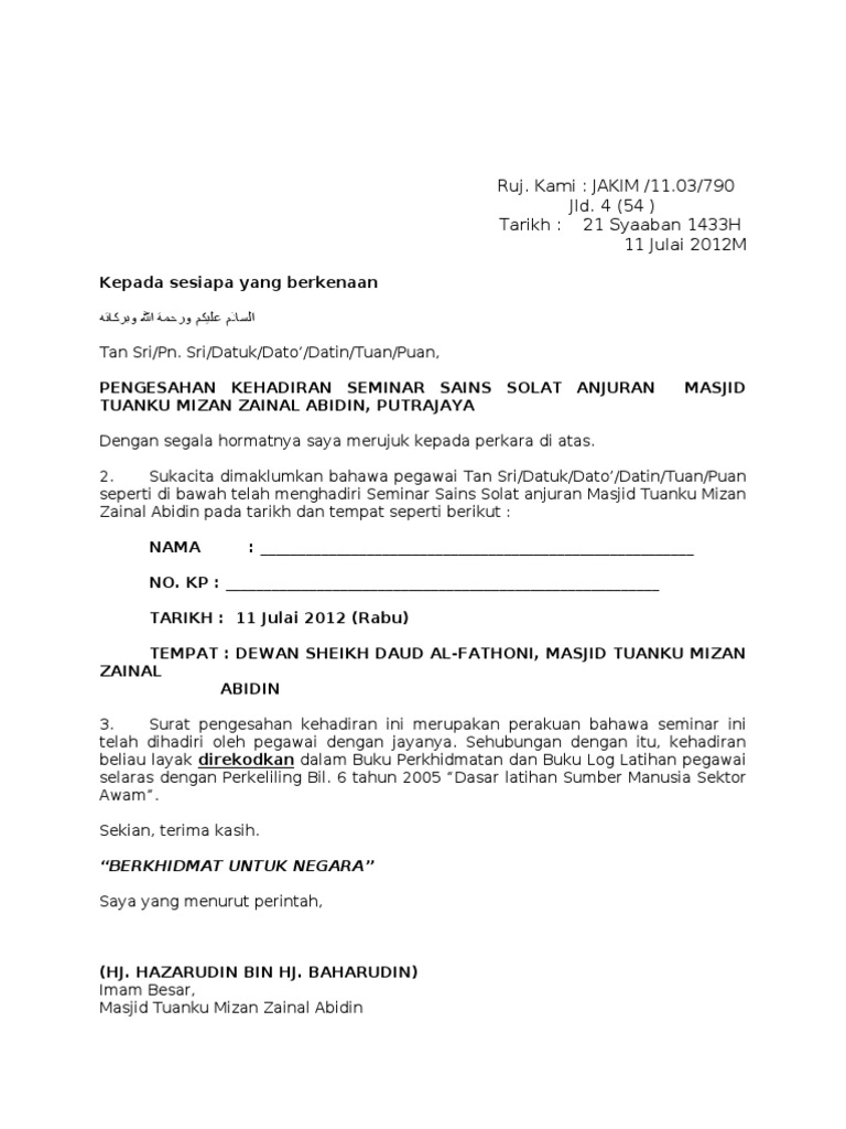 Contoh Surat Pengesahan Kehadiran Pdf